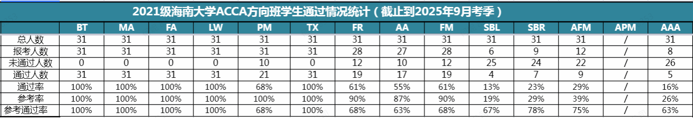 2021级ACCA方向班升学率32.25%