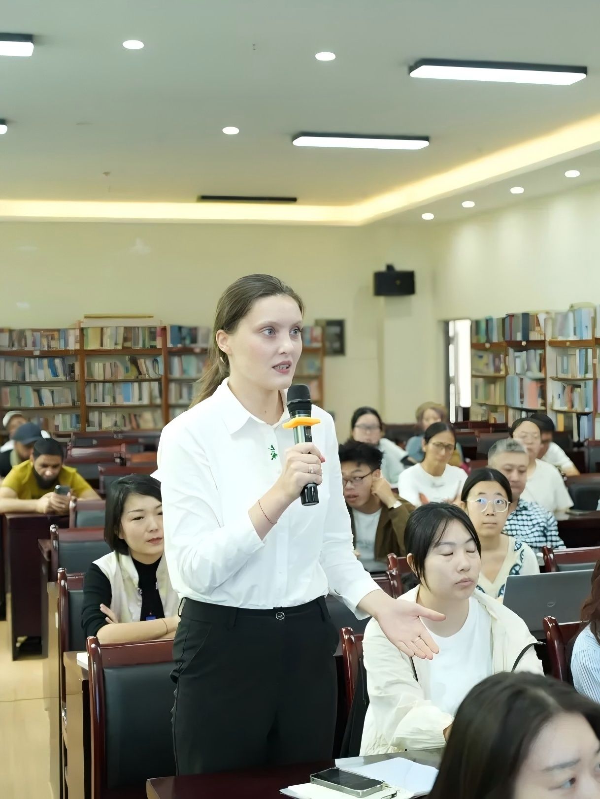 自由交流阶段将活动推向了高潮。现场听众积极性高涨,纷纷举手发言,就自己在学习、创业过程中遇到的困惑直接向曾宪章博士求教。曾博士耐心解答,以其丰富的经验和独到的见解,为师生们提供了宝贵的指导和建议,现场互动频繁,气氛热烈。