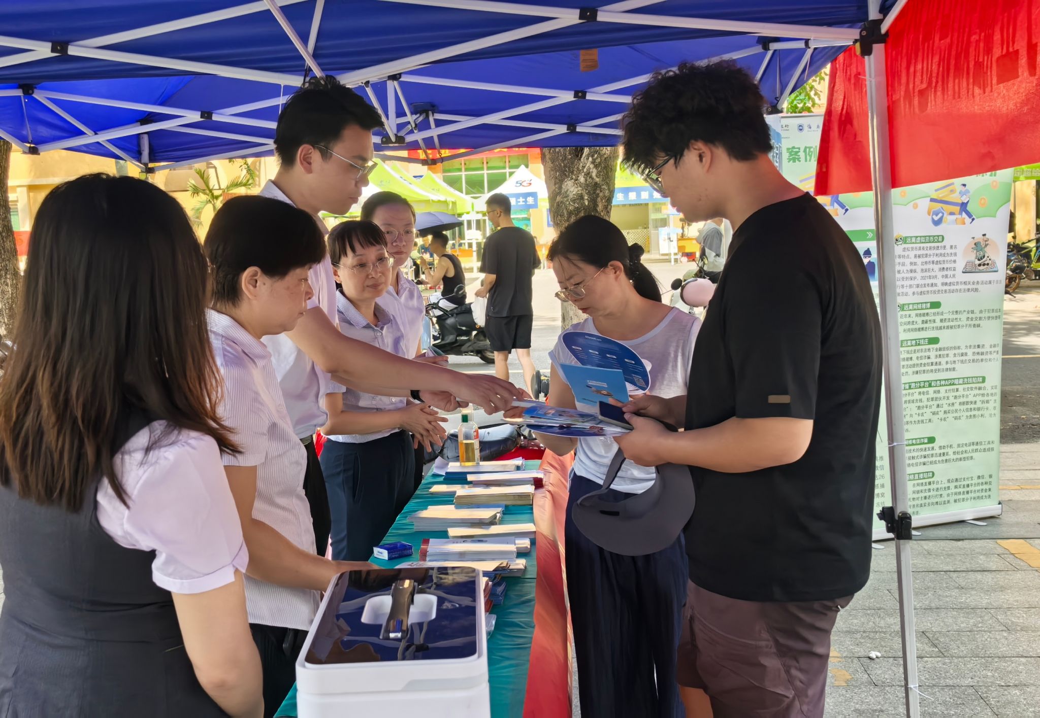 六食堂门口一场别开生面的“反洗钱科普摊位”引发师生围观。由中国人民银行海南省分行、水仙直播